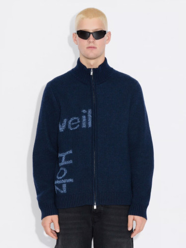 Haza logo zip cardigan blue mix