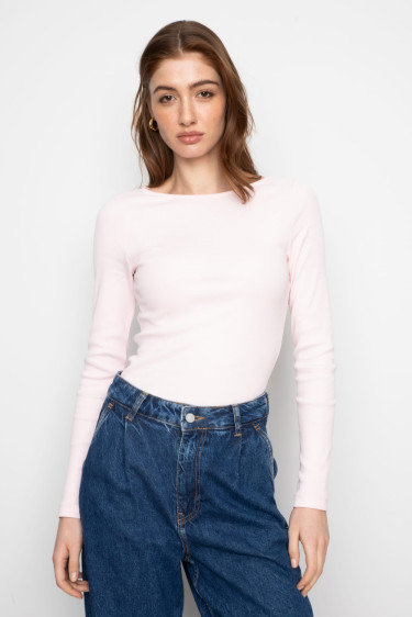 Petronella rib boatneck, light pink