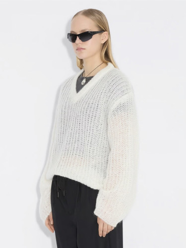 Boxy mohair v-neck ecru