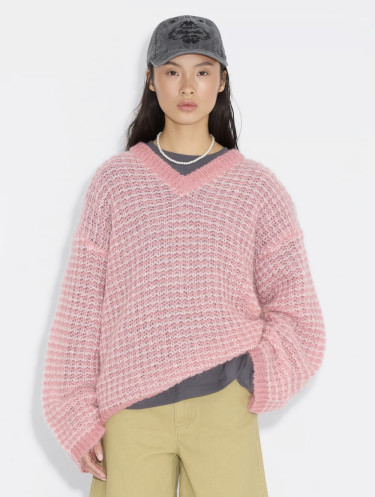 Boxy mohair v-neck pink mix