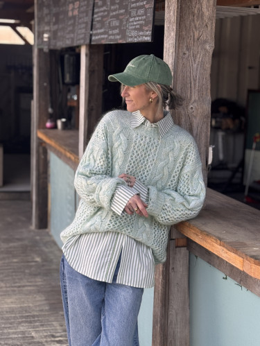 Mohair cable knit green mix